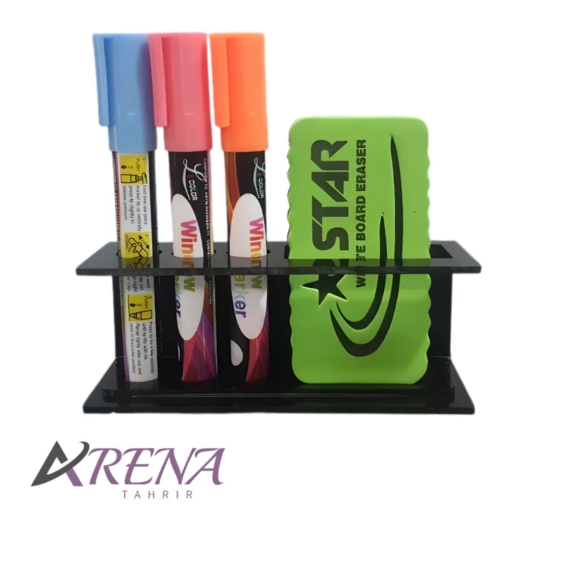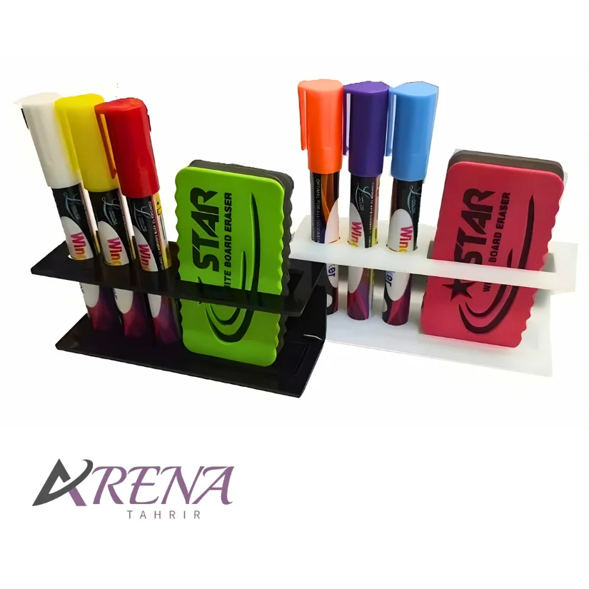 بدنه این محصول از پلاستیک باکیفیت و مقاوم ساخته شده که در برابر استفاده روزمره دوام بالایی دارد. طراحی آن بهگونهای است که سه جای مخصوص ماژیک و یک جای مجزا برای تخته پاک کن در اختیار شما قرار میدهد و از شلوغی اطراف تخته جلوگیری میکند. رنگبندی مشکی و سفید نیز باعث میشود بهراحتی با انواع تختهها و دکورهای محیطی هماهنگ شود.
