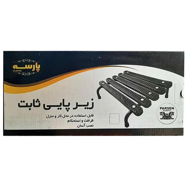 زیرپایی پلاستیکی ثابت پارسه با طراحی ارگونومیک و استاندارد، به کاهش فشار بر روی پاها و کمر کمک میکند. این محصول برای افرادی که ساعتهای طولانی پشت میز کار میکنند، انتخابی ایدهآل به شمار میآید.