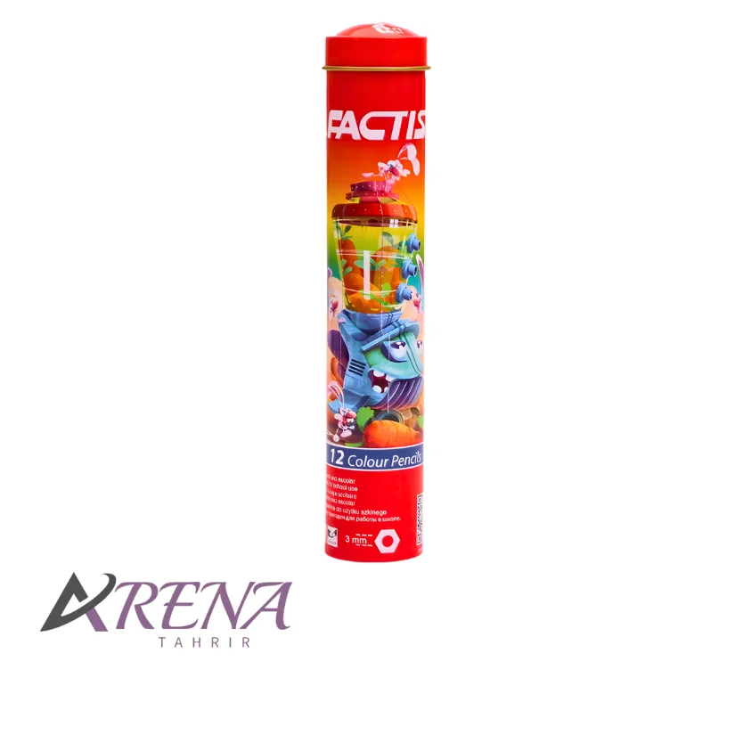 مداد رنگی ۱۲ رنگ فکتیس (FACTIS) با بسته‌بندی فلزی استوانه‌ای، یک انتخاب کاربردی و بادوام برای دانش‌آموزان و کودکان است که هم از نظر کیفیت ساخت و هم از نظر ایمنی، استانداردهای لازم برای استفاده‌ی روزمره را فراهم می‌کند. این مجموعه با ارائه‌ی طیفی متنوع از رنگ‌های زنده و پرکاربرد، امکان خلق نقاشی‌های شاد و تمرین مهارت‌های رنگ‌آمیزی را به‌راحتی فراهم می‌سازد.