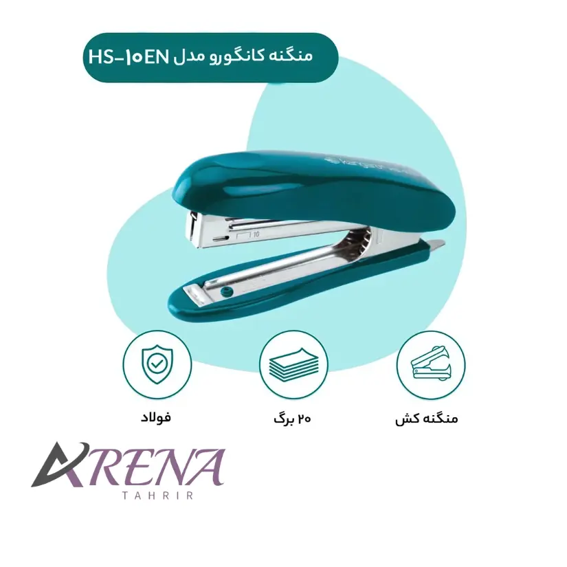 منگنه کانگرو مدل HS-10EN ابزاری کاربردی و پرکاربرد در محیطهای اداری، مدرسه و منزل است که با طراحی محکم و قطعات باکیفیت خود، به یکی از ابزارهای ضروری برای انجام کارهای روزانه تبدیل شده است. این منگنه با ظرفیت منگنه کردن تا ۲۰ برگ کاغذ ۷۵~۸۰ گرمی، بهراحتی نیازهای روزمره شما را پوشش میدهد. طراحی آن به گونهای است که امکان بارگذاری سریع سوزن و انجام منگنه کردن به صورت معمولی را فراهم میکند.